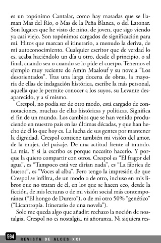 man Mas del Río, o Mas de la Peña Blanca, o del Latonar. haya seguido transformando. Crespol es autoanálisis, histo-