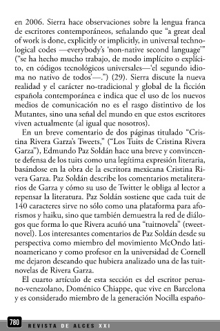gos que forma lo que Rivera acuñó una “tuitnovela” (tweet- lectual, el artículo es menos gratificante porque parece sim-