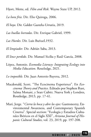Cinema”. Special section: “Ecología y Estudios Cultu-