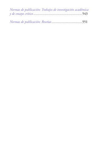 Normas de publicación: Trabajos de investigación académica y de ensayo crítico ...................................................................543 Normas de publicación: Reseñas ..........................................551