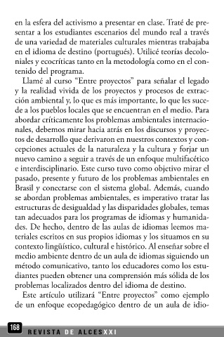 tan adecuados para los programas de idiomas y humanida- centrada en el trabajo de teóricos decoloniales y ecocríticos,