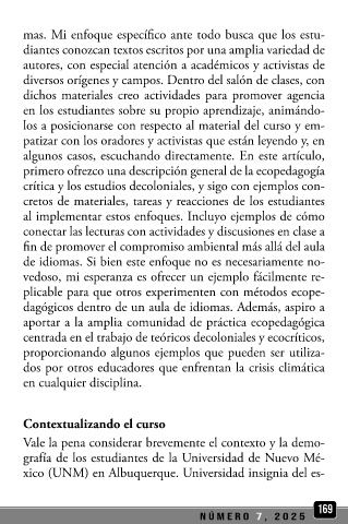 de un enfoque ecopedagógico dentro de un aula de idio- xico (UNM) en Albuquerque. Universidad insignia del es-