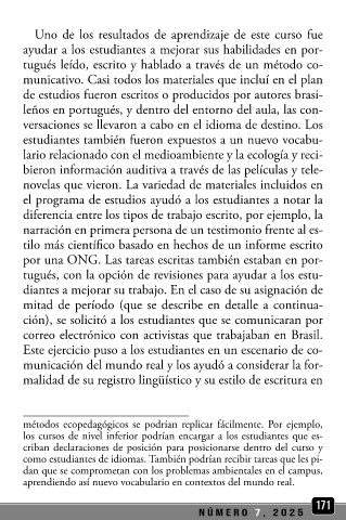 en portugués que por un verdadero interés en el medio am- diantes a mejorar su trabajo. En el caso de su asignación de