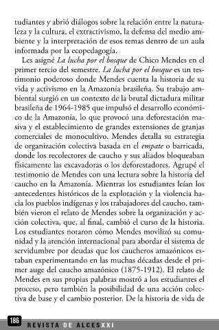 Los estudiantes notaron cómo Mendes movilizó su comu- nidades que ya participaban en prácticas ambientales sos-