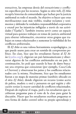 las (ejatlas.org/), eligieran un país latinoamericano y obser- aprovecharan las lecturas y llevaran las cosas un poco más