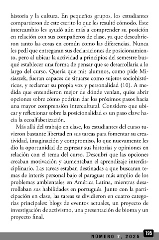 cia una ecopedagogía crítica. Quería que los estudiantes re- compartieron de este escrito lo que les resultó cómodo. Este