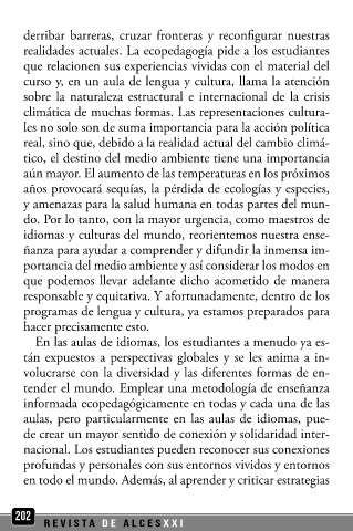 curso y, en un aula de lengua y cultura, llama la atención mentar un enfoque ecopedagógico que eduque a los estu-