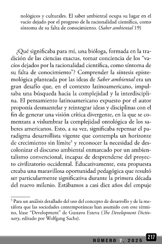 de la epistemología ambiental y la ecología política. 5 Para un análisis detallado del uso del concepto de desarrollo y de la me-
