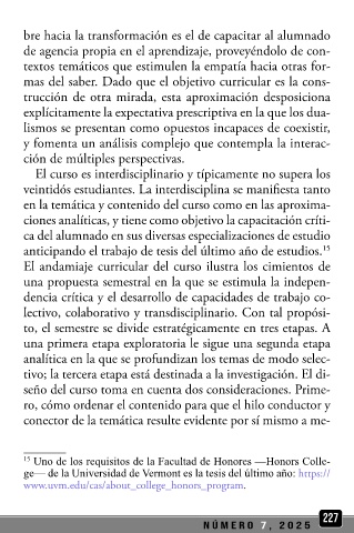 14 El curso “Climate Crisis & Latin America” es un seminario de segun- 15 Uno de los requisitos de la Facultad de Honores —Honors Colle-