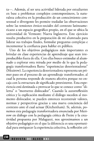 (Mezirow). La experiencia desorientadora representa un pri- ca en América Latina mi alumnado lee contextualmente la