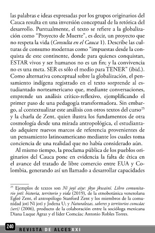 samiento indígena registrado en el texto sorprende al es- sos sustentables). Entonces, además de ver la globalización