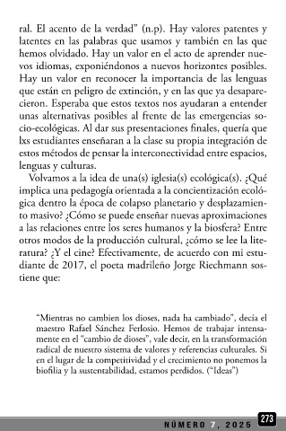 “Una primera tarea de urgencia ecológica en nuestro tiem- biofilia y la sustentabilidad, estamos perdidos. (“Ideas”)