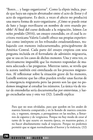 América Central. Cada parte del ensayo empieza con una se”. Al final de Los niños perdidos, Luiselli comparte sus ex-