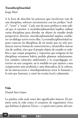 varias disciplinas para abordar un objeto de estudio desde naturales —biología, bioquímica, biosfera, etc.—. Se tra-
