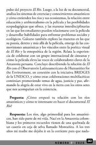 se involucró en el proyecto El Río cuando Galeano le pidió Pregunta: ¿Cómo empezó tu relación con los ríos