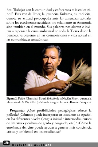 Figura 2. Rafael Chanchari Pizuri, filósofo de la Nación Shawi, durante la que los estudiantes examinen de modo interdisciplinario las