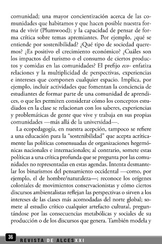 coloniales de movimientos conservacionistas y cómo ciertos no “educación para la sostenibilidad”. Es fundamental en