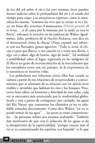 el documental cómo la chicua (Piaya cayana) nos advier- desapegados de la tierra. El Río es como un último llama-