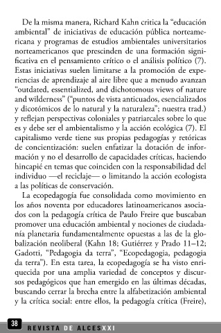 De la misma manera, Richard Kahn critica la “educación la educación ecológica (Orr), la educación basada en el lu-