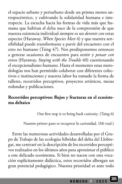 límites de las políticas conservacionistas, así como del siste- otros (Haraway, Staying with the Trouble 40) cuestionando