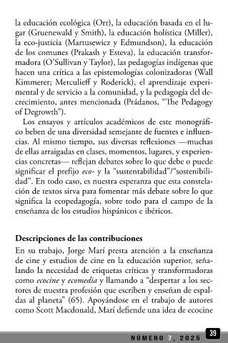 y la crítica social: entre ellos, la pedagogía crítica (Freire), como Scott Macdonald, Marí defiende una idea de ecocine