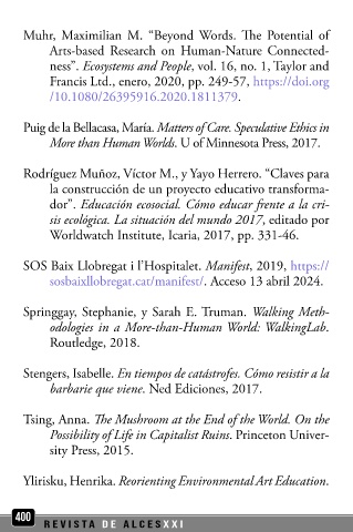 More than Human Worlds. U of Minnesota Press, 2017. Este artículo examina algunas prácticas artístico-pedagógicas desa-