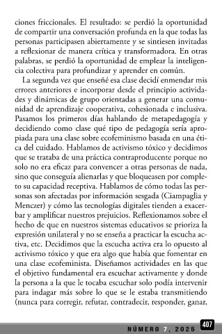 ecofeminista. La clase analizó un número significativo de ca del cuidado. Hablamos de activismo tóxico y decidimos
