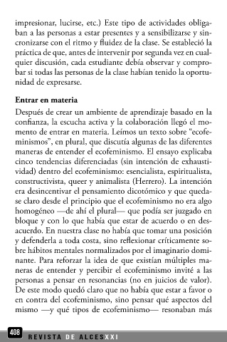 práctica de que, antes de intervenir por segunda vez en cual- con ella sobre lo que habíamos aprendido de ecofeminismo