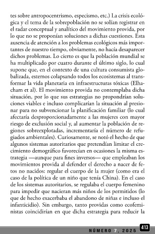 tizar colectivamente la reproducción de la vida humana (en gica y el tema de la sobrepoblación no se solían registrar en