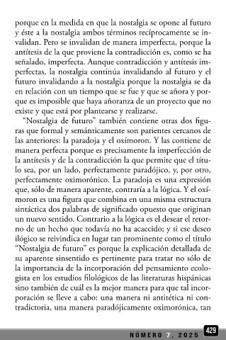 naria de que toda confrontación se nutre y la adopción de “Nostalgia de futuro” también contiene otras dos figu-