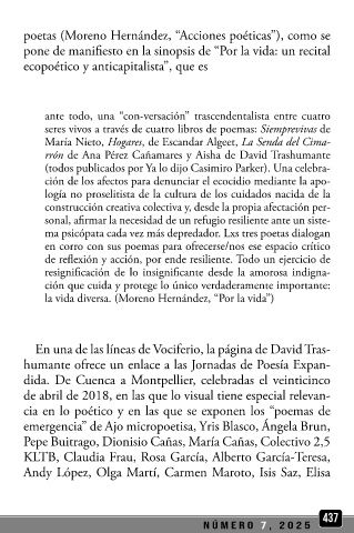 mo ecosocial, nos proponemos desde esta importante cita anual poetas (Moreno Hernández, “Acciones poéticas”), como se