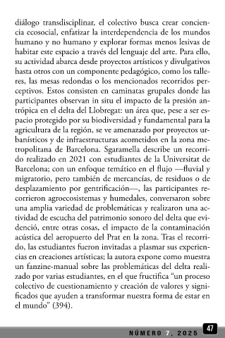 de Humanities for the Environment. A través de un recorri- diálogo transdisciplinar, el colectivo busca crear concien-