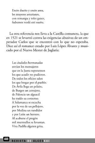 en 1521 se levantó contra las exigencias abusivas de un em- ha de ser la tierra, / que vuelva común al pueblo / lo que del
