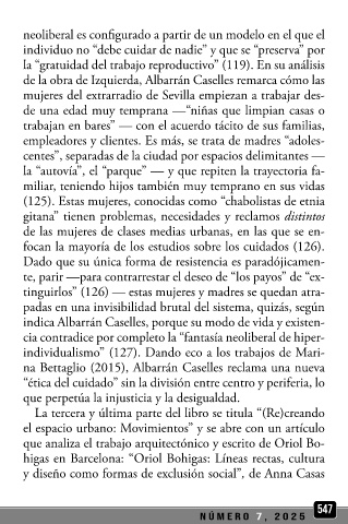 cio, clase y etnia, ampliando así el debate de los cuidados en indica Albarrán Caselles, porque su modo de vida y existen-