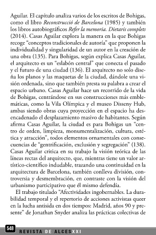 Aguilar. El capítulo analiza varios de los escritos de Bohigas, protesta y la forma en la que transforman la realidad exis-