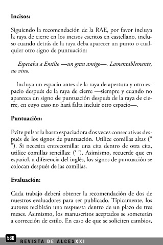 aparezca un signo de puntuación después de la raya de cie- Sólo los socios de ALCESXXI pueden enviar reseñas a la re-