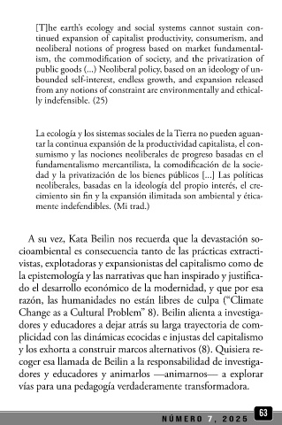 bre pedagogía crítica, conciencia socioambiental y compro- sumismo y las nociones neoliberales de progreso basadas en el