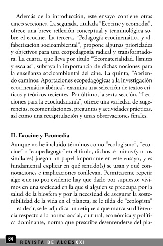 cinco secciones. La segunda, titulada “Ecocine y ecomedia”, deseable, por supuesto, sería que todas las personas se preo-
