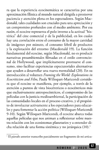 bientalmente relevantes en películas que no aparentan tener 9-10). Según Willoquet-Maricondi, el ecocine abarca todas