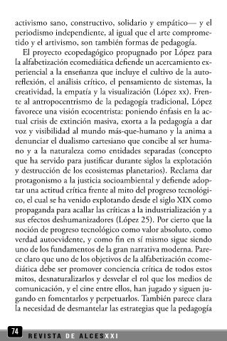 tar una actitud crítica frente al mito del progreso tecnológi- nemáticos y ecomediáticos (López 27). Parece apropiado