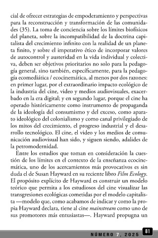 ecológicos. Según estos autores, el reconocimiento de los lí- pia Hayward declara, tiene al cine mainstream como uno de