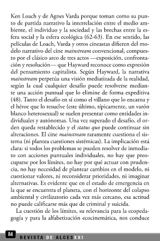 alteraciones. El cine mainstream raramente cuestiona el sis- rrelaciones, causas, consecuencias, interdependencias. Nos