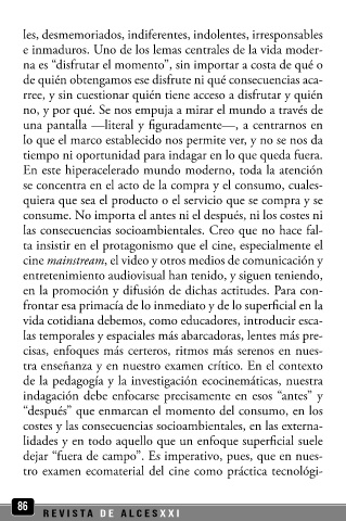 na es “disfrutar el momento”, sin importar a costa de qué o socioambientalmente hablando, de la experiencia cinema-