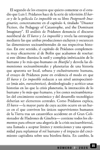 del deterioro socioecológico en la fase actual del antropoce- Imaginary”. El análisis de Prádanos denuncia el discurso