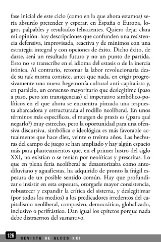 XXI, no existían o se tenían por neolíticas y prescritas. Lo momentos de cierta radicalidad y consistencia con otros, por ejemplo,