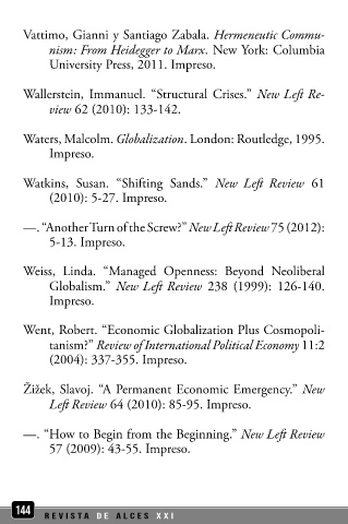 Vattimo, Gianni y Santiago Zabala. Hermeneutic Commu- —. Violence. Six Sideways Reflections. New York: Picador,