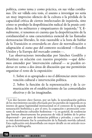cómo se produjo la despolitización radical de la praxis coti- ta que no distinga la intervención cultural de la intervención