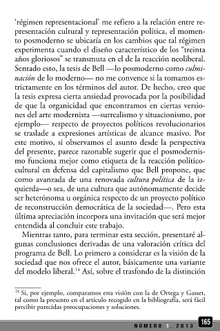 tos inscritos en las diferentes posiciones literarias y artísticas Sentado esto, la tesis de Bell —lo posmoderno como culmi-