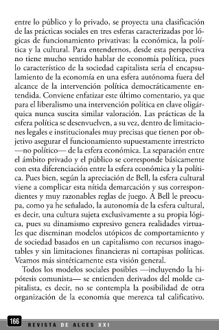 pitalista, es decir, no se contempla la posibilidad de otra de lo privadopersonal, se puede argumentar que el diagnóstico que Bell