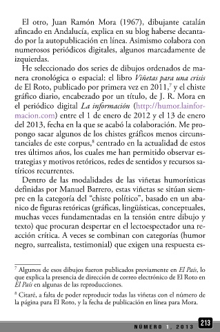 sa. la página para El Roto, y la fecha de publicación en línea para Mora.